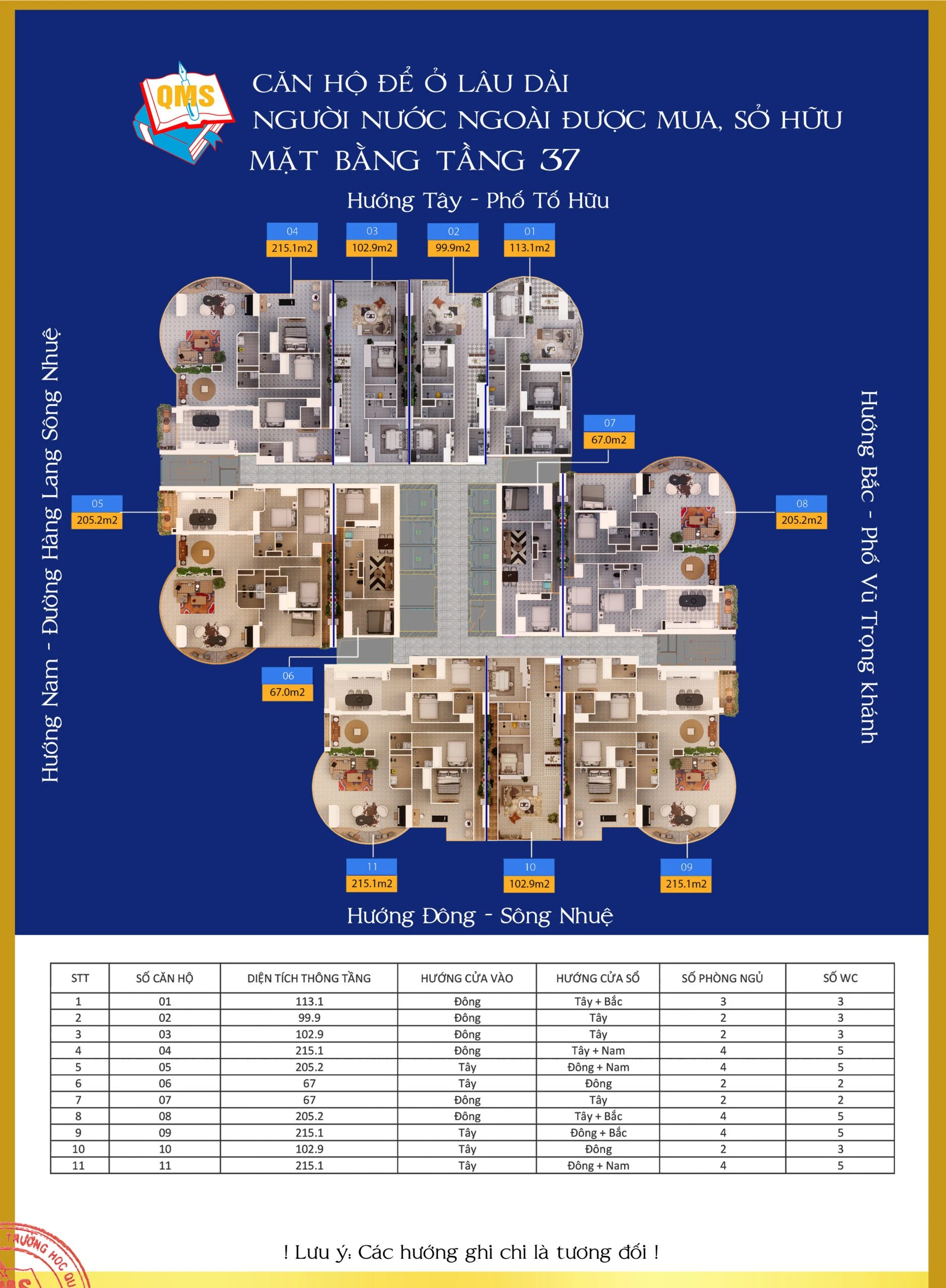 Giá bán chung cư QMS Tower: từ 3x triệu/m2 (Giá bán đã bao gồm VAT và Nội thất hoàn thiện cao cấp)