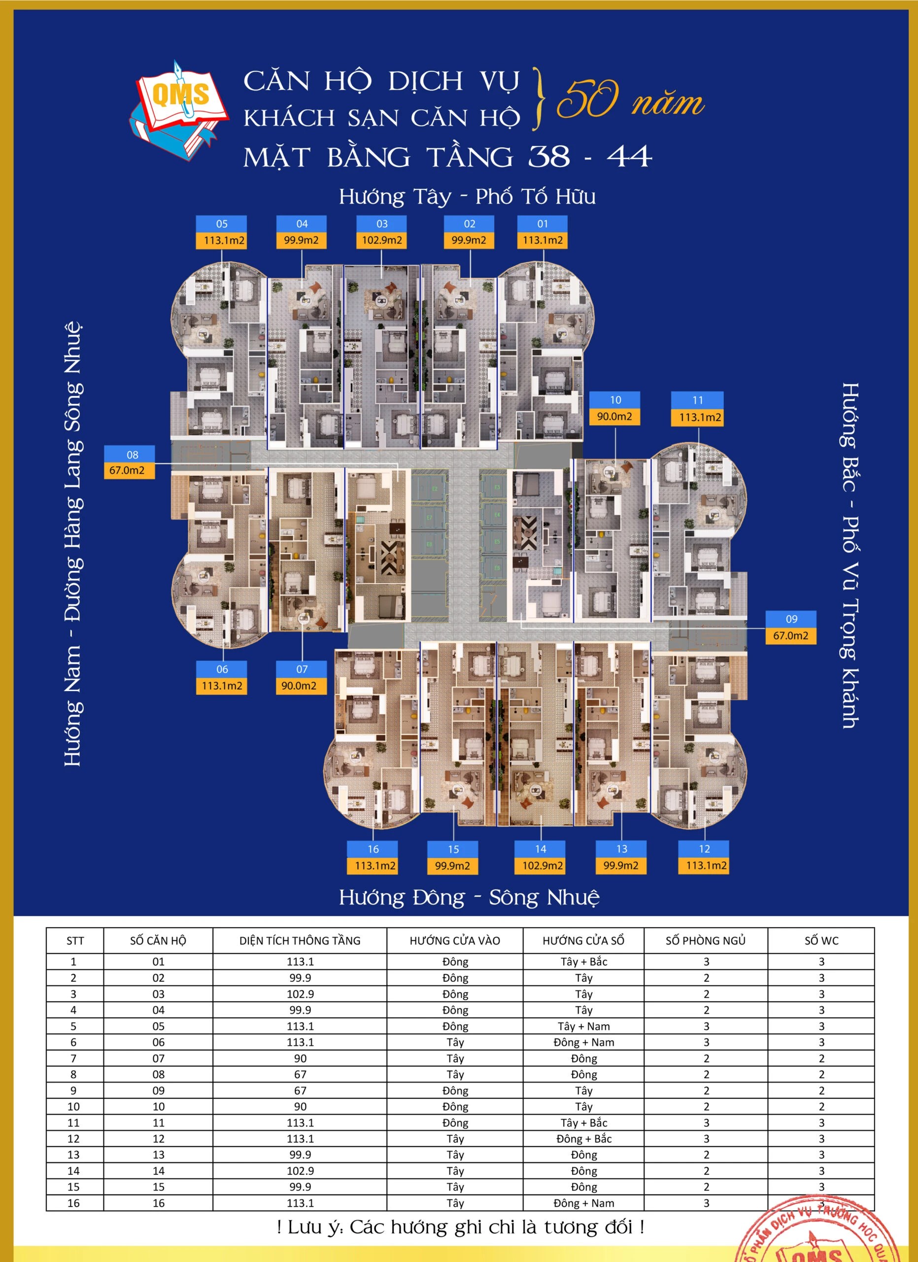 Tầng 38 – 44: Tầng căn hộ khách sạn