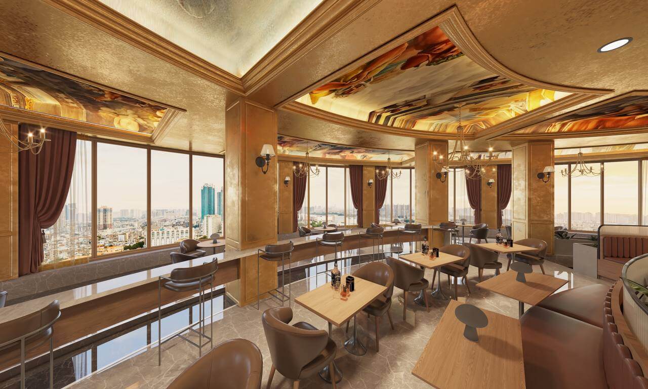 Tiện ích nội khu: Trung tâm thương mại, Gym, Spa,Bể bơi bốn mùa trong nhà, Khu công viên mặt đất, Sky Bar, Vườn thượng uyển…