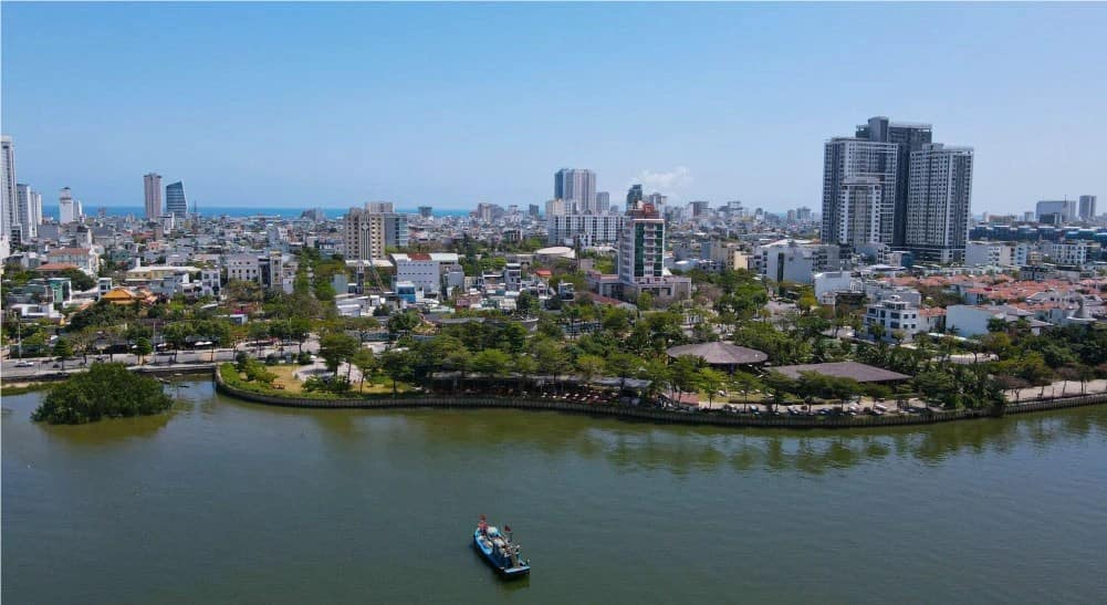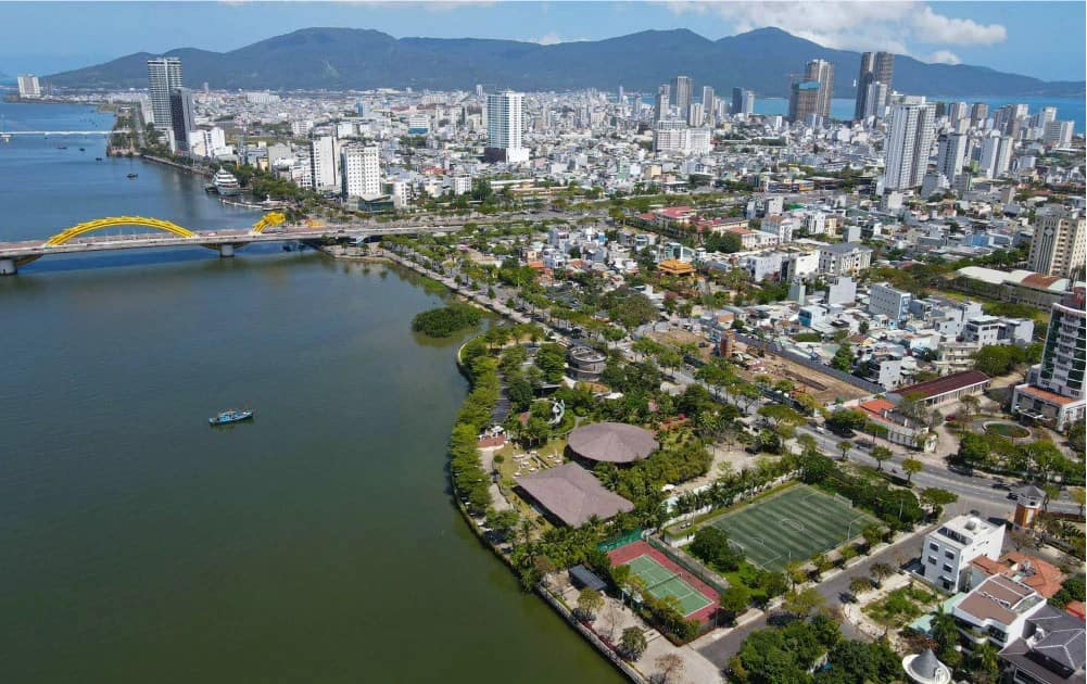 Đối diện bờ Đông sông Hàn, khu dạo bộ ven sông Hàn.