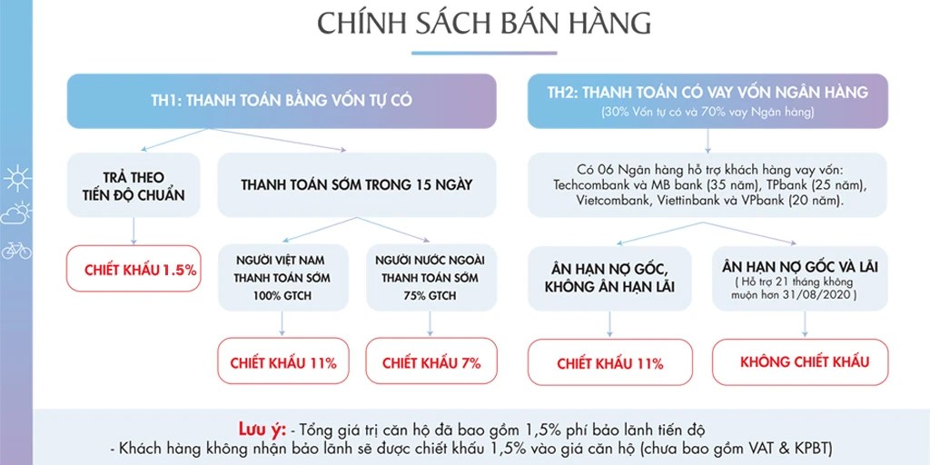 Thanh toán sớm 100% GTCH trong vòng 15 ngày từ ngày ký HĐMB bằng vốn tự có: Chiết khấu 9%
